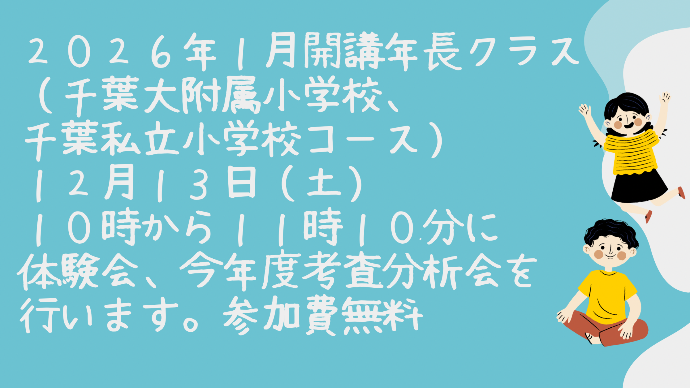 お子様には楽しく、お母様にはほっとしていただける教室を目指しております。お問い合わせは043-301-5103まで。
